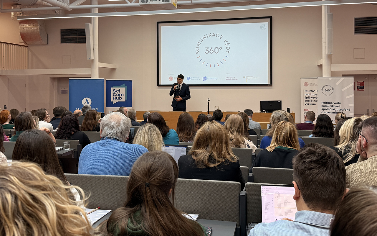 Inštitucionálna podpora komunikácie vedy, nové perspektívy v popularizácii, či zrozumiteľná komunikácia vedcov s novinármi boli témy druhého ročníka konferencie Komunikace vědy 360°. Podujatie sa uskutočnilo vo štvrtok 5. februára 2026 na pôde Fakulty sociálnych vied Karlovej univerzity v Prahe. Konferencia prilákala odborníkov v oblasti PR, popularizácie vedy a mediálnej komunikácie z pracovísk Akadémie vied Českej republiky (AV ČR), českých univerzít aj zo Slovenskej akadémie vied (SAV). Podujatie moderoval Daniel Stach.