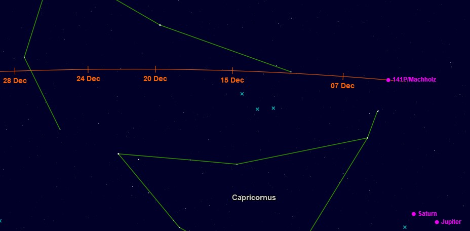 Aj tento rok sa môžeme opäť tešiť na kométu viditeľnú počas Vianoc. V druhej polovici decembra bude malými ďalekohľadmi pozorovateľná kométa 141P/Machholz 2.