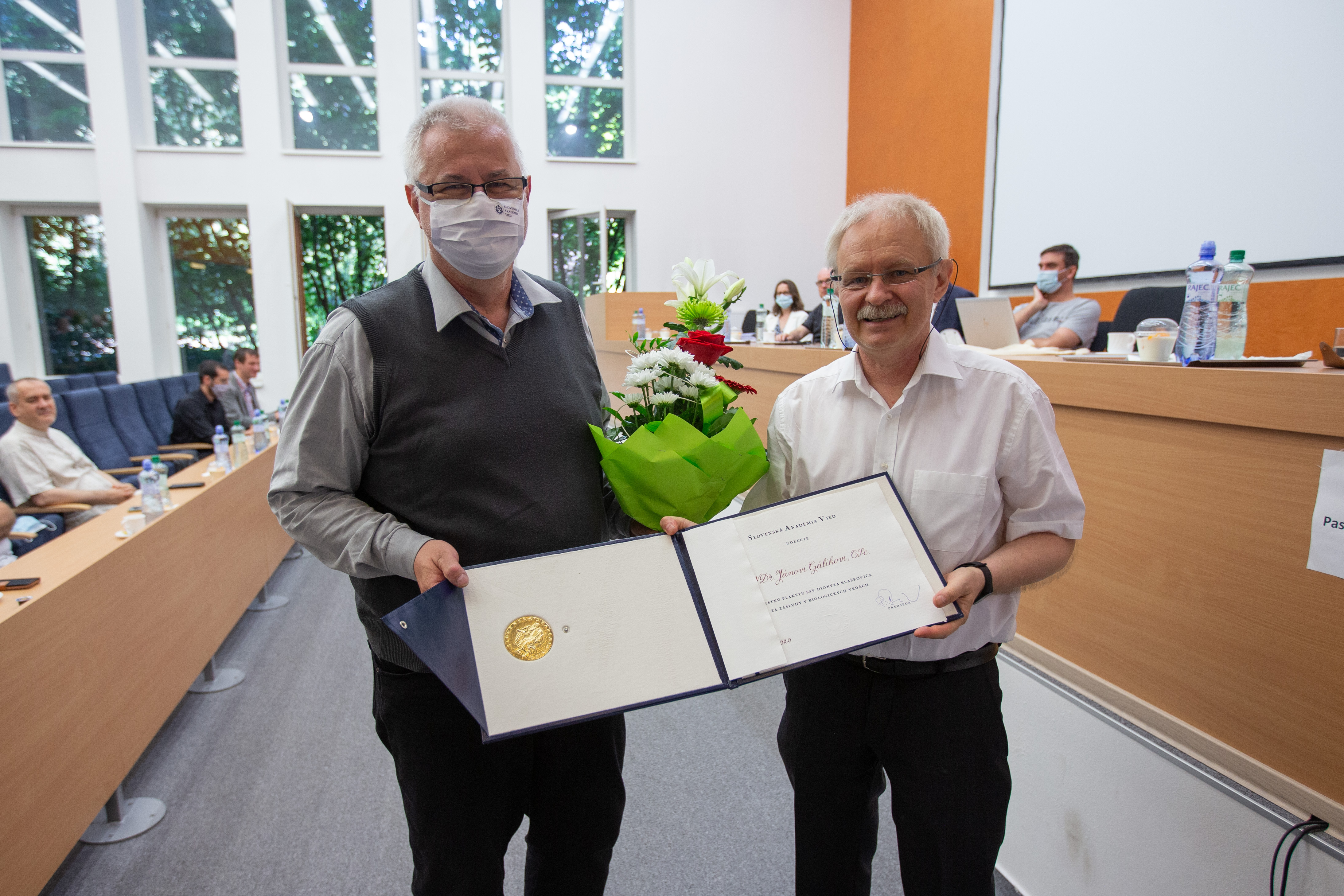 Súčasťou pracovného výjazdu členov Predsedníctva SAV v Košiciach bolo aj udelenie Čestnej plakety Dionýza Blaškoviča odborníkovi v oblasti neurovedného výskumu, zanietenému propagátorovi vedy a vedeckému riaditeľovi Neurobiologického ústavu BMC SAV RNDr. Jánovi Gálikovi, CSc. Predseda SAV profesor Pavol Šajgalík a podpredseda SAV pre druhé oddelenie vied profesor Karol Marhold ju odovzdali v piatok 18. júna 2021 v Aule SAV na Watsonovej ulici v Košiciach. Prítomní boli aj zástupcovia vedenia ústavov SAV pôsobiacich na východnom Slovensku.