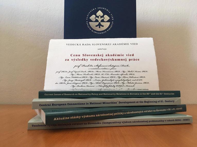 Za spracovanie rozsiahlej analýzy národnostnej politiky a národnostných vzťahov na Slovensku vrátane historických súvislostí týchto vzťahov prostredníctvom interdisciplinárne orientovaného empirického výskumu s využitím jedinečnej metodiky výskumu národnostnej problematiky, získal v roku 2021 Cenu SAV za výsledky vedecko – výskumnej práce projekt APVV Tendencie vývoja etnických vzťahov na Slovensku (komparatívny výskum národnostnej problematiky v rokoch 2004-2020) – (TESS2) – TESS, pod vedením prof. PaedDr. Štefana Šutaja, DrSc. Na jeho riešení sa v rokoch 2016 – 2020 podieľali vedeckí pracovníci z Centra spoločenských a psychologických vied SAV: prof. PhDr. Jozef Výrost, DrSc.; PhDr. Mária Homišinová, PhD.; Mgr. Michal Kentoš, PhD.; Mgr. Mária Ďurkovská, PhD.; RNDr. Branislav Šprocha, PhD.; Mgr. Lucia Heldáková, PhD.; Mgr. Lucia Ištoňová, PhD.; Mgr. Klara Kohoutová, PhD.; Mgr. Juraj Martonyik, PhD. Súčasťou riešiteľského kolektívu boli aj pracovníci Filozofickej fakulty UPJŠ: doc. PhDr. Jana Šutajová, PhD.; Mgr. Nikola Regináčová, PhD.; Mgr. Mikuláš Jančura, PhD.; Mgr. Barbara Kacerová.