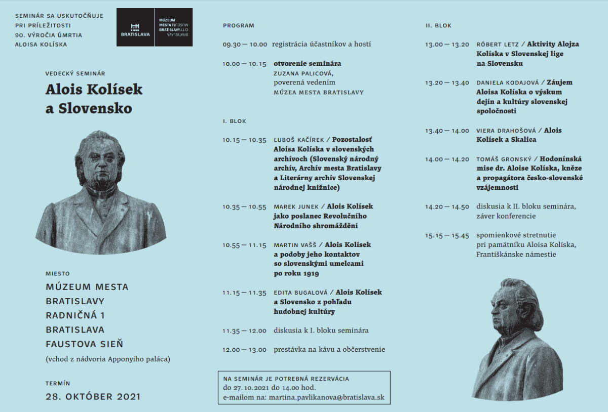 Seminár je tiež otvorený aj referátom venujúcim sa spoločenskému a kultúrnemu životu v meste Bratislava v medzivojnovom období – s priamym vzťahom k osobnosti Aloisa Kolíska.