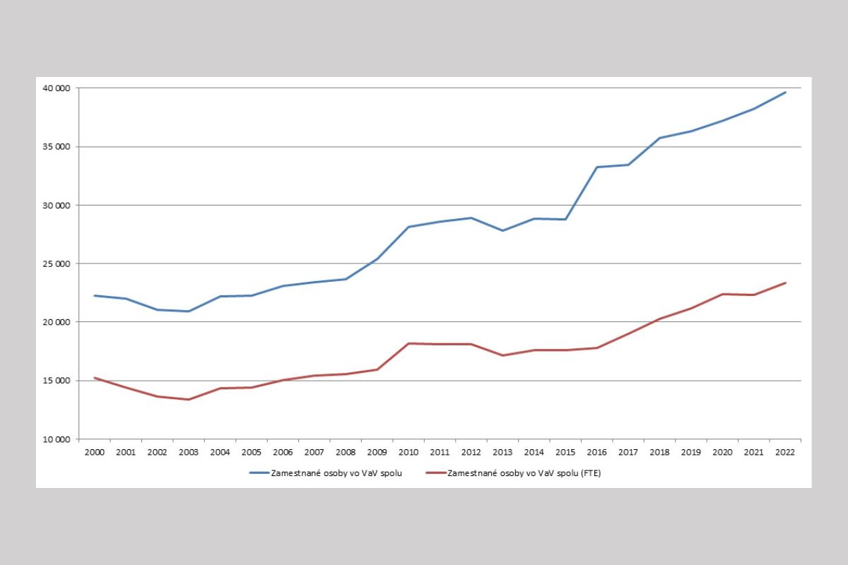 Od roku 2004 do roku 2022 sa počet vedeckých a výskumných pracovníkov zvýšil o 62,9 % a dosiahol 23 344 osôb. Táto dynamika je z väčšej časti spojená s 261,6 % rastom výskumných kapacít vo firmách. Tento vysoký rast výskumnej základne vo firmách vyplýva z toho, že ich výskumné kapacity boli v 90-tych rokoch veľmi nízke. Vstupom do EÚ sa Slovensko stalo zaujímavou príležitosťou pre zahraničné investície a firmy tu postupne posilňujú aj výskumné kapacity.
