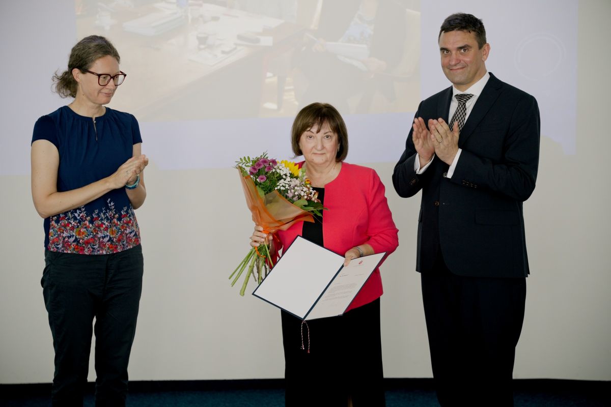 V prednáškovej sále Dionýza Blaškoviča Virologického ústavu BMC SAV si z rúk predsedu SAV Martina Venharta prevzalo v pondelok 8. septembra 2025 pozdravné listy šestnásť osobností SAV, ktoré sa dožívajú v tomto roku významného jubilea.