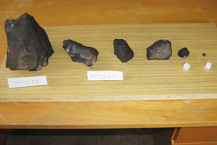 The glare of the bolide illuminated streets and interior of apartments, at some places in Eastern Slovakia cannon-like burst or series of low frequency blasts were heard. Due to the bad weather, cloudy skies and scatter showers the Central European Fireball Network (operated by dr. Pavel Spurny of the Czech Academy of Sciences) did not take direct optical records of the bolide and Slovak Video Network (operated by dr. Juraj Toth of Comenius University in Bratislava) did not operate that night so that at first moment it seemed that there are no scientific records of this event. Fortunately fast photoelectric sensors on 7 automated fireball stations in the Czech Republic (6) and Austria (1) detected the illumination of the sky caused by the bolide which enabled to determine exact time and duration of the bolide and estimate its brightness. The bolide reached the maximum brightness at least -18 magnitude in one huge flare. In the morning few photographers took a picture of a possible scatter dust trail. Later on several surveillance camera data were published showing the moment when the night became a day for a second but only two videos from Hungary (Orkeny village, Fazzi Daniella and Vass Gabor; Telki village, contact persons Szarneczky Krisztian, Kiss Laszlo) actually captured the fireball itself. Thanks to calibration of videos by several members of the Hungarian Astronomical Association (MCSE - www.mcse.hu) contributed (namely Igaz Antal) and trajectory analysis done by dr. Jiri Borovicka of the Czech Academy of Sciences gave the hope that significant number of meteorite fragments reached the surface. He also calculated the impact area near town Kosice in Eastern Slovakia. The expedition consisting of scientists and graduate students of the Astronomical Institute of the Slovak Academy of Sciences (under the leadership of Jan Svoren), Comenius University in Bratislava (under the leadership of Juraj Toth), Czech Academy of Sciences (under the leadership of Pavel Spurny) started to sweep meadows and forests at the calculated area. The first meteorite was discovered by Juraj Tóth on March 20th. Until the March 28th, 64 meteorite fragments were found. The heaviest fragment weights 2.19 kg, the smallest pieces were only about 0.5 gram. The total mass recovered is equal to 3.917kg. Preliminary analysis implies that the recovered meteorite is classified as an ordinary H5 chondrite (dr. J. Haloda, Czech GeologicalSurvey). The ongoing data analysis will reveal also other parameters of this bolide as the meteorite atmospheric velocity, pre-atmospheric mass and initial orbit in the Solar System. According to Slovak laws, meteorites belong to the state. Collecting meteorites is allowed only to state or academic institutions from Slovak Republic.