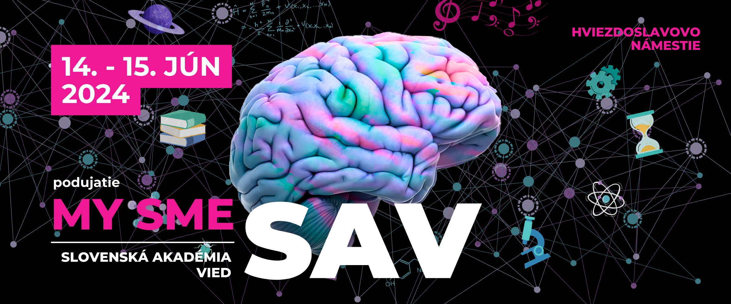 Tanec, hudba, zábava, no v hlavnej úlohe VEDA – takto bude vyzerať najväčšia popularizačná akcia Slovenskej akadémie vied s názvom My sme SAV. Takmer 30 ústavov a výskumných centier akadémie sa predstaví verejnosti svojimi stánkovými prezentáciami na Hviezdoslavovom námestí v Bratislave 14. – 15. júna 2024. Vedecké hviezdy budú vystupovať aj na pódiu, a to počas celodenného piatkového programu. Ten sa bude niesť v duchu hesla „made by SAV“, pretože všetko, čo uvidíte, bude doslova z našej dielne – od hudby, tanca cez humor a tak trochu aj mágiu až po samotnú vedu.