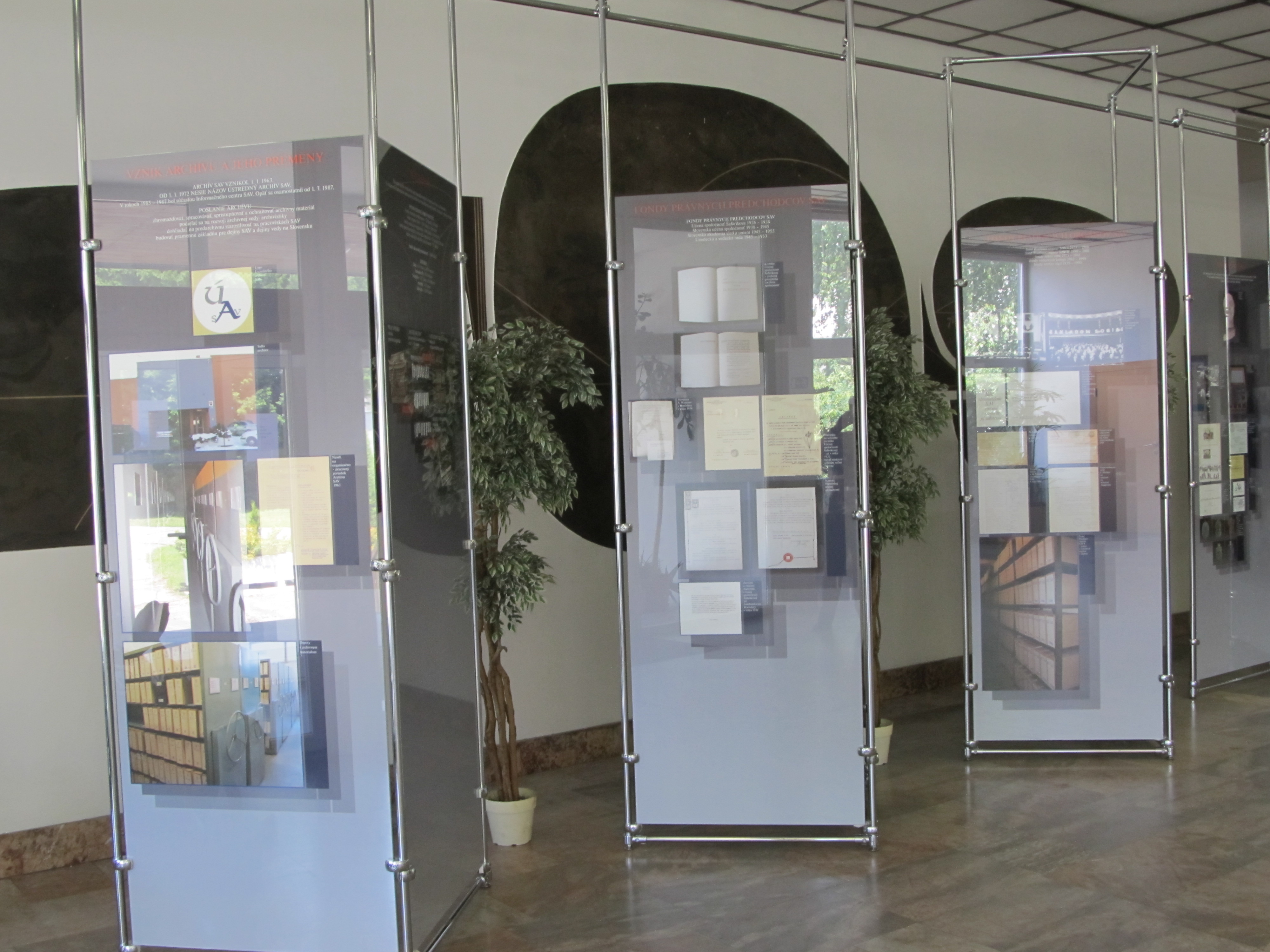 Výstava 50 rokov Ústredného archívu SAV zachytáva na niekoľkých paneloch vznik archívu, jeho poslanie a odbornú činnosť. Popisuje archívne fondy a zbierky z činnosti riadiacich orgánov SAV, jej vedeckých, špecializovaných a servisných pracovísk, ako aj popredných predstaviteľov slovenskej vedy. Dokumentuje právnych predchodcov Akadémie, ktorých fondy Ústredný archív uchováva. Umožňuje nahliadnuť do depotov archívu a približuje pracovníkom Akadémie niektoré z najcennejších pokladov ukrytých v archívnych škatuliach a regáloch. Všetci návštevníci výstavy sú srdečne vítaní!