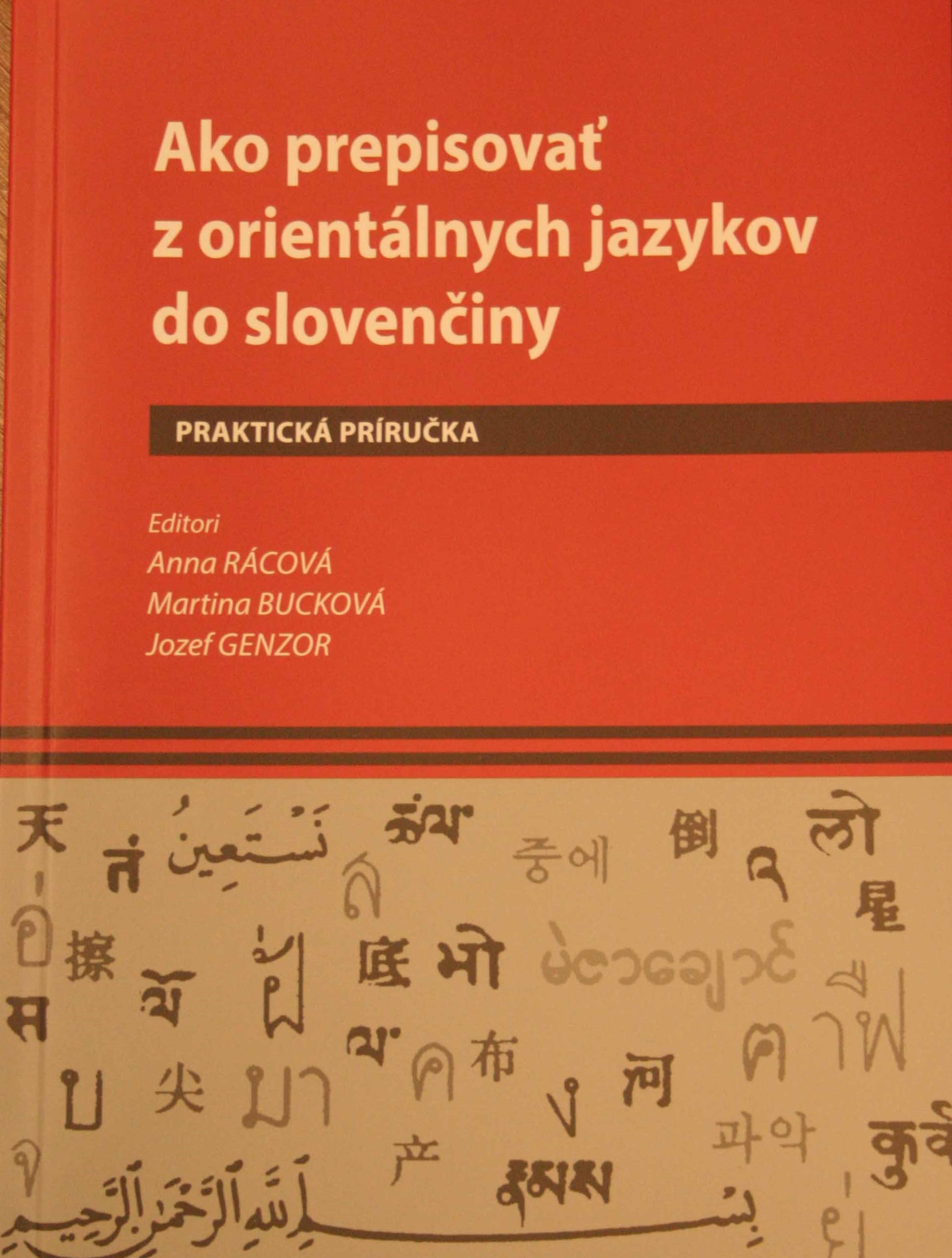 RÁCOVÁ, Anna – BUCKOVÁ, Martina – GENZOR, Jozef: Ako prepisovať z orientálnych jazykov do slovenčiny. Praktická príručka. Bratislava : Ústav orientalistiky SAV, Slovak Academic Press, 2018, 134 s. ISBN 978-80-89607-70-9.