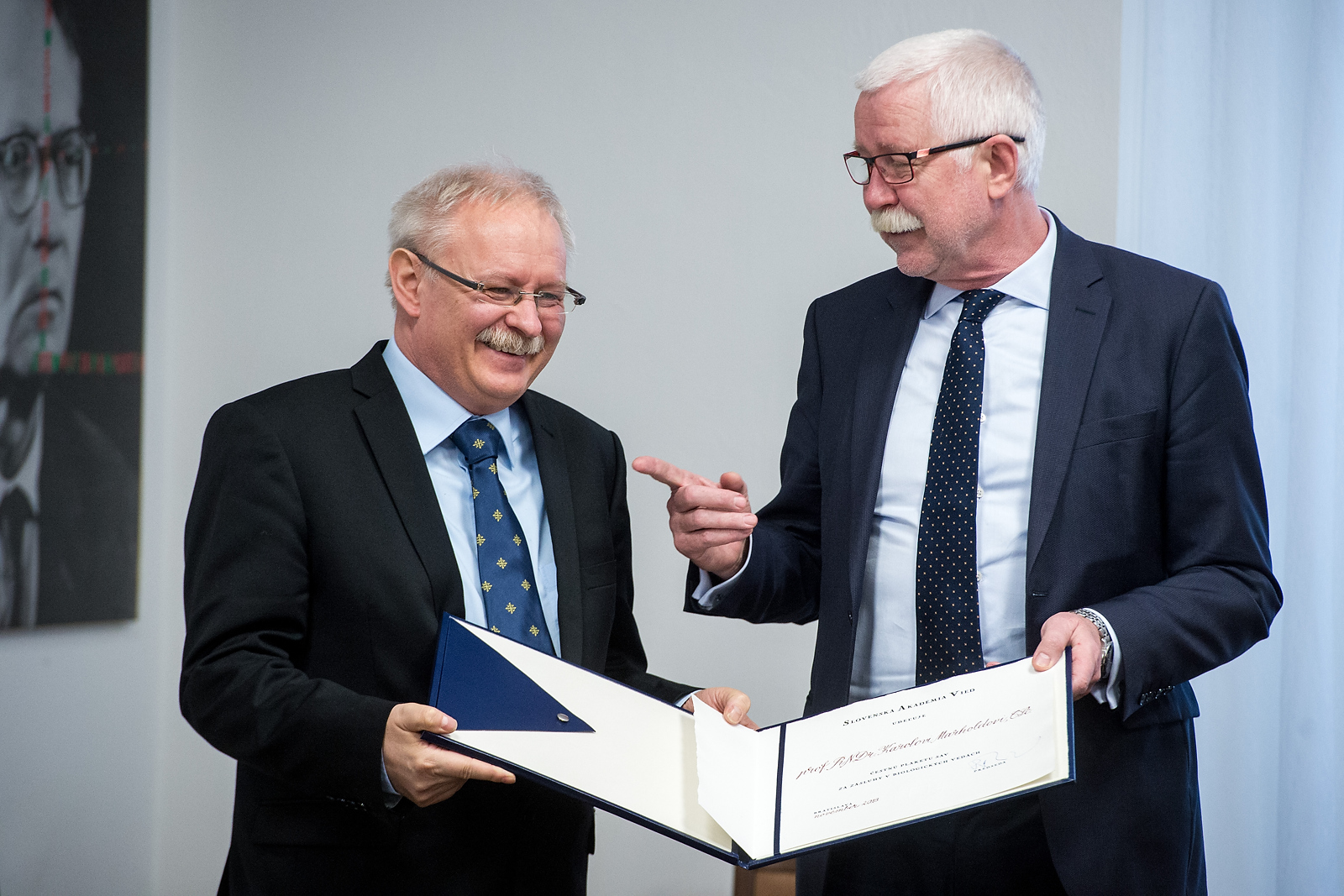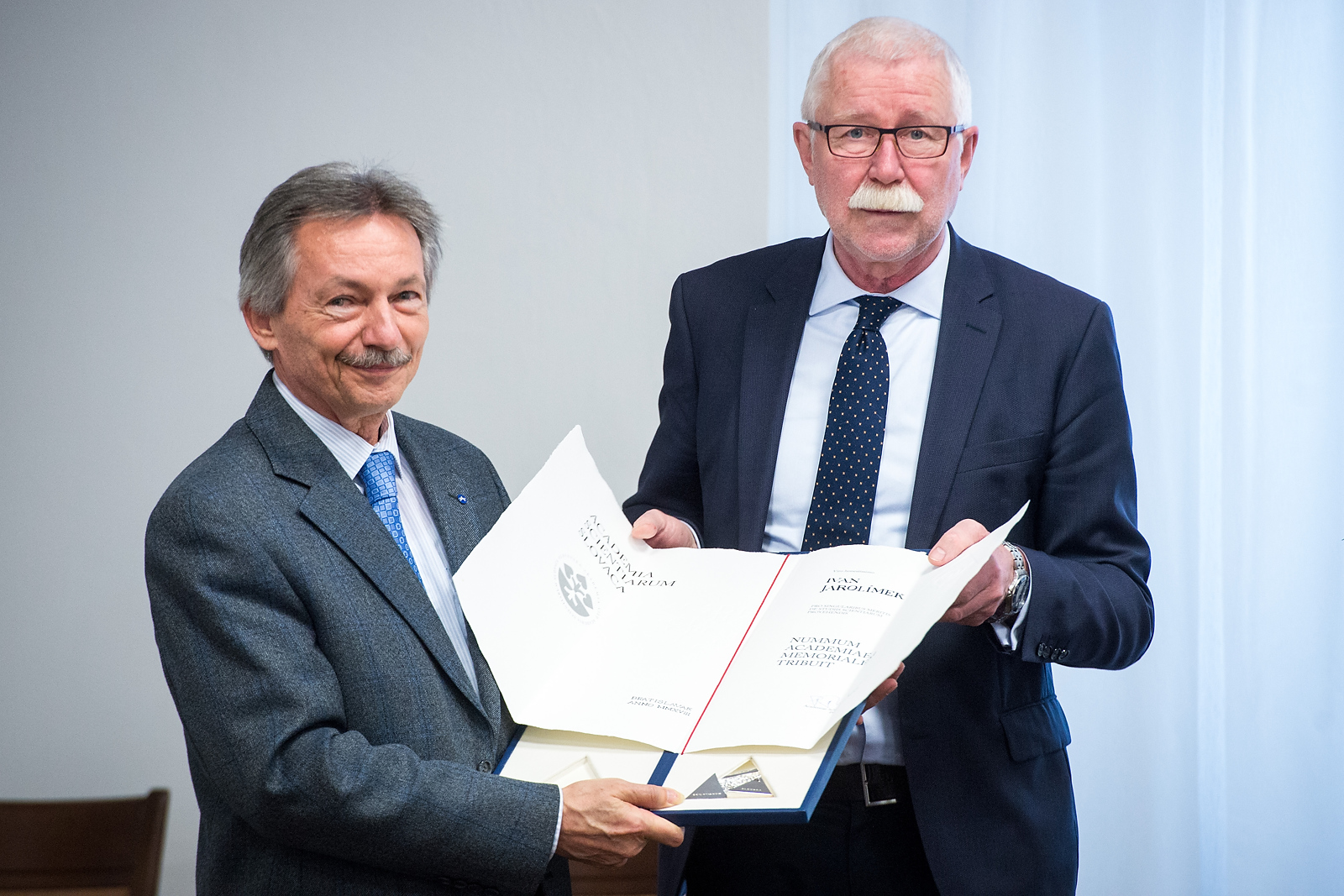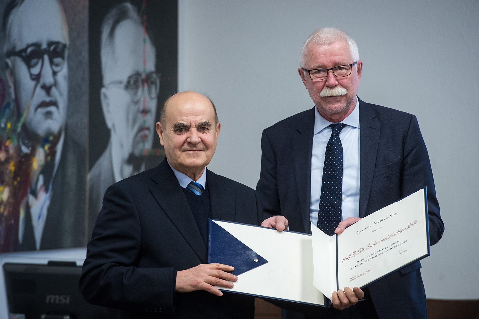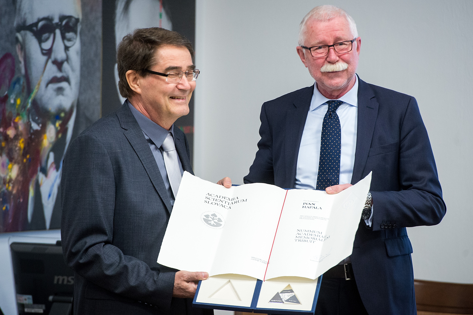 Medailu SAV za podporu vedy slávnostne odovzdal RNDr. Ivanovi Jarolímkovi, CSc., z Centra biológie rastlín a biodiverzity SAV a RNDr. Ivanovi Hapalovi, CSc., z Ústavu biochémie a genetiky živočíchov Centra biovied SAV. Čestnú plaketu Dionýza Ilkoviča si prevzal prof. RNDr. Ľudovít Varečka, DrSc., z Ústavu biochémie a mikrobiológie STU v Bratislave a Čestnú plaketu SAV za zásluhy v biologických vedách prof. RNDr. Karol Marhold, CSc., z Centra biológie rastlín a biodiverzity SAV. V následnej diskusii sa veľa a často aj s úsmevom spomínalo na projekty, na prácu, na ľudí vo výskume, ale napríklad aj na sťahovanie Ústavu biochémie a genetiky živočíchov SAV z Ivánky pri Dunaji. Ich spoločným menovateľom však bolo nesmierne zanietenie pre vedeckú prácu, v ktorej sú všetci ocenení stále naplno aktívni a úspešní. Slávnostné chvíle umocnili precízne pripravené a prednesené laudatia členkami Predsedníctva SAV Ing. Máriou Omastovcou, DrSc. a prof. RNDr. Ľubicou Lacinovou, DrSc.