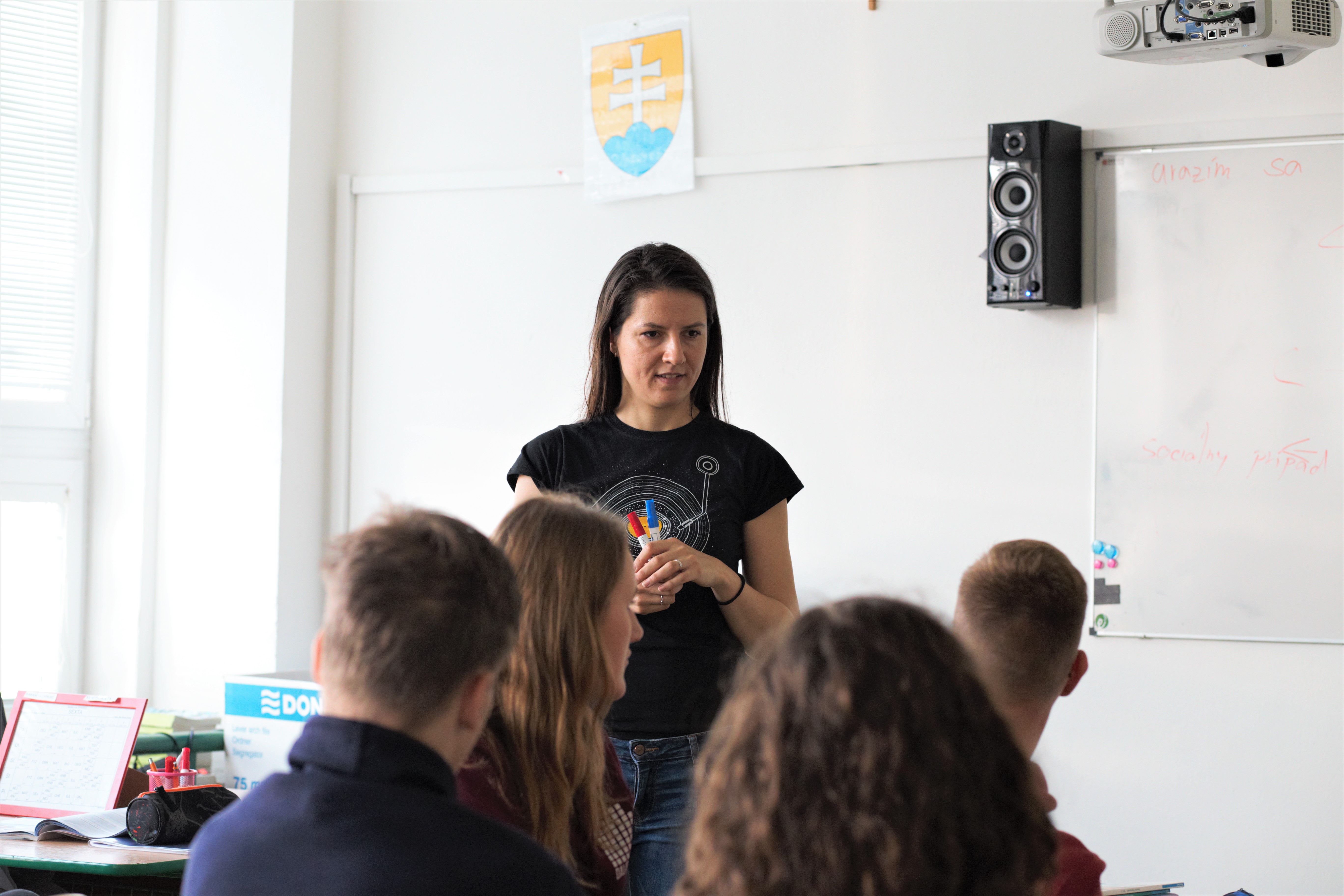 Júlia Vrábľová z Jazykovedného ústavu Ľudovíta Štúra SAV odučila na školách hodiny slovenčiny.