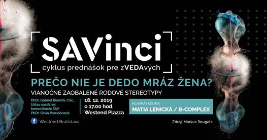 Vážne, no aj s predvianočným nadhľadom budeme hovoriť v poslednej tohtoročnej vedeckej kaviarni SAVinci o rodových stereotypoch. Téma decembrovej kaviarne znie Prečo nie je dedo Mráz žena a stretneme sa netypicky 18. decembra už o 17. h v Kongresovej sále Westend Plazza.