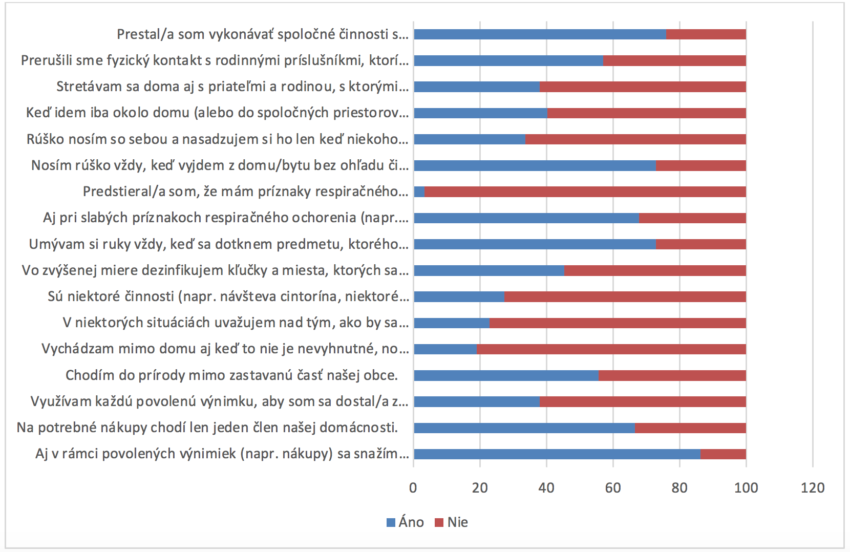 - Tretina ľudí (27,3 %) uviedla, že niektoré činnosti (napr. návšteva cintorína či niektoré voľnočasové aktivity) sú pre nich také dôležité, aby nedodržiavali opatrenia.