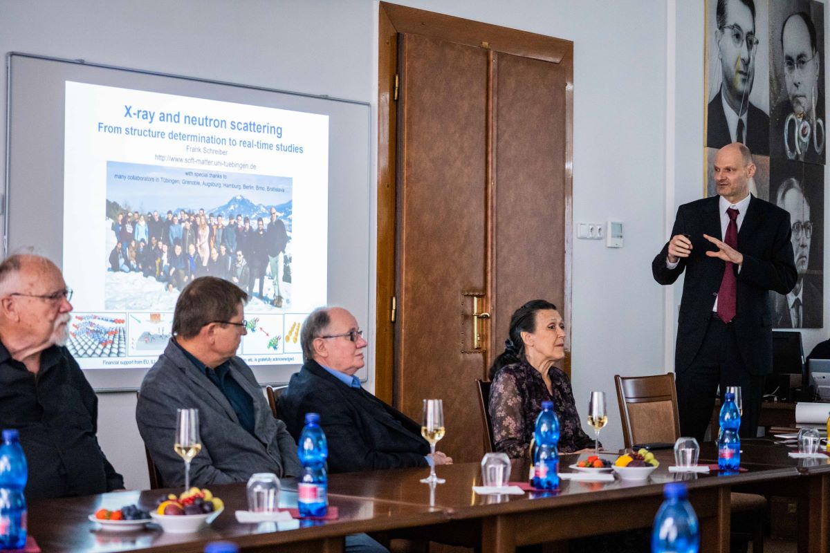 „Je mi cťou udeliť vám v mene SAV tento titul, ktorý je odzrkadlením vašej vedeckej práce,“ uviedol pri odovzdávaní vedeckej hodnosti prof. Pavol Šajgalík. Prof. Frank Schreiber zareagoval na udelenie titulu slovenským poďakovaním. „Je to česť a zadosťučinenie pre moju prácu na Slovensku. Som veľmi šťastný,“ zdôraznil vo svojej ďakovacej reči nemecký fyzik.