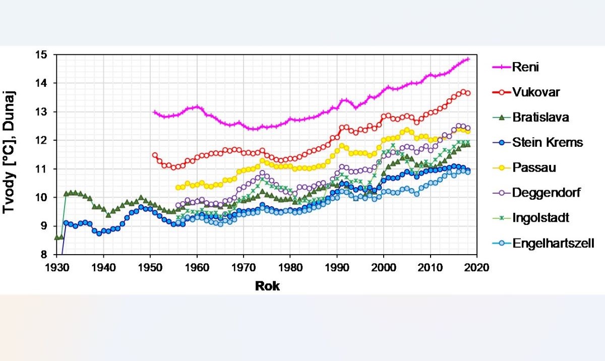 Za posledných 30 rokov došlo v našich tokoch – i v samotnej rieke Dunaj – v dôsledku rastu teploty vzduchu k výraznému nárastu teploty vody. Z údajov z ôsmich staníc po dĺžke toku Dunaja vyplýva, že teplota vody Dunaja bola v období 1991 – 2020 v priemere o 1,15 °C teplejšia ako v období 1961  1990 (obr. 1). Priemerná ročná teplota vody vo všeobecnosti zodpovedá priemernej ročnej teplote vzduchu územia, ktorým rieka preteká.