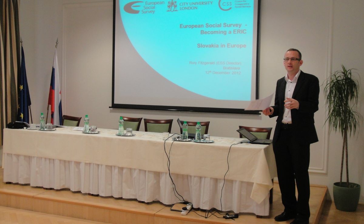 ESS ERIC je medzinárodný akademický prieskum, ktorý skúma názory a postoje obyvateľov a obyvateliek Európy k rozmanitým oblastiam života a spoločnosti. V roku 2023 si pripomíname 20 rokov Európskej sociálnej sondy (ESS ERIC) na Slovensku. Rovnako dve desaťročia trvá aj spolupráca medzi slovenským koordinačným tímom ESS vedeným Denisou Fedákovou, Michalom Kentošom a Jozefom Výrostom (SvÚ CSPV SAV, v. v. i.) a riaditeľom ESS ERIC profesorom Rorym Fitzgeraldom.