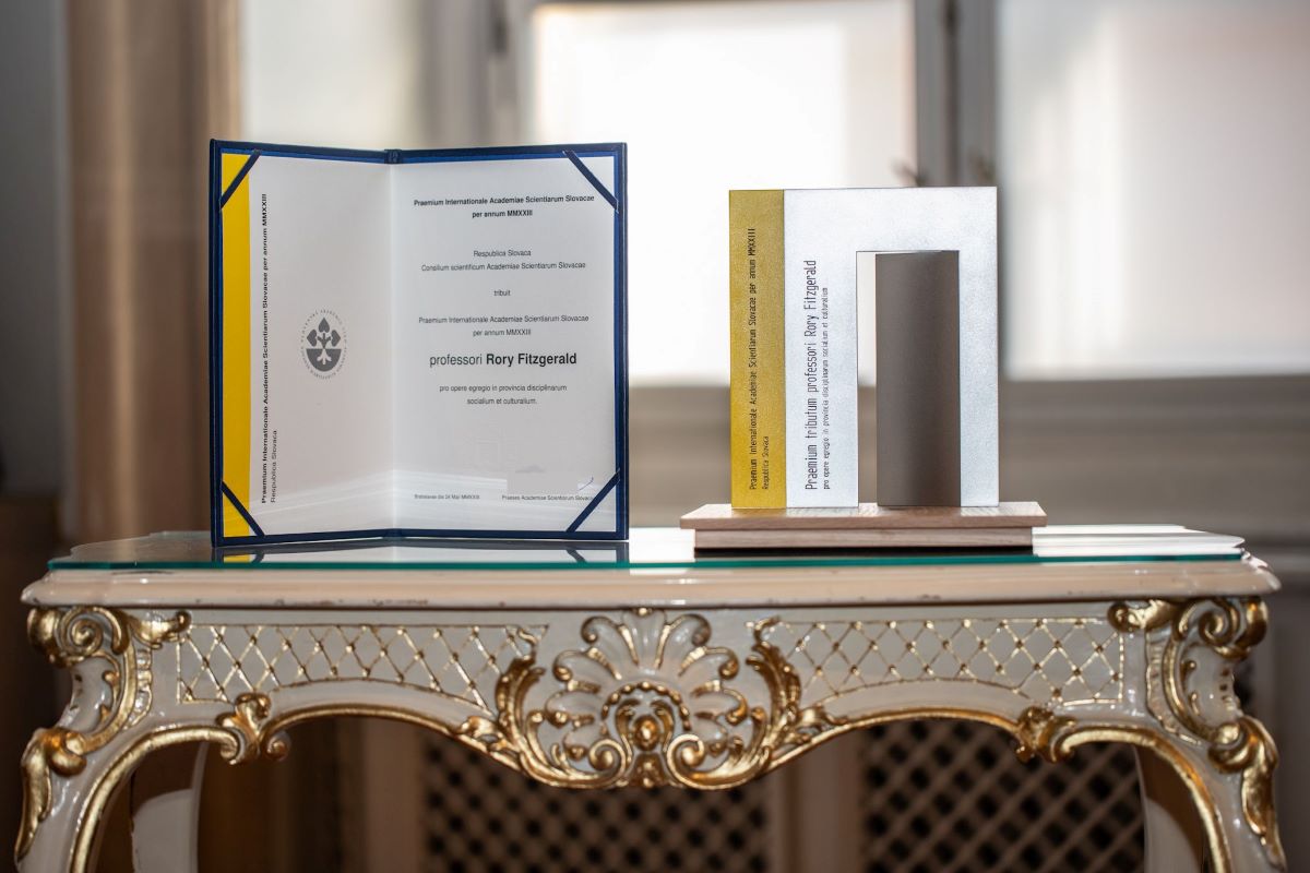 Vedecká rada SAV udelila Medzinárodnú cenu v oblasti vied o spoločnosti a kultúre profesorovi Rorymu Fitzgeraldovi zo City, University of London, súčasnému riaditeľovi infraštruktúrneho výskumného projektu Európska sociálna sonda (ESS ERIC). Prof. Fitzgerald sa významnou mierou pričinil o zabezpečenie kontinuity projektu ESS na Slovensku. Vďaka jeho neustálej podpore slovenského koordinačného tímu zo Spoločenskovedného ústavu Centra spoločenských a psychologických vied SAV, v. v. i., (SvÚ CSPV SAV, v. v. i.) sa Slovenská republika v roku 2018 stala plným členom projektu ESS ERIC. Slávnostné odovzdanie Medzinárodnej ceny SAV sa uskutočnilo v utorok 26. septembra 2023 v Zrkadlovej sieni Primaciálneho paláca v Bratislave.