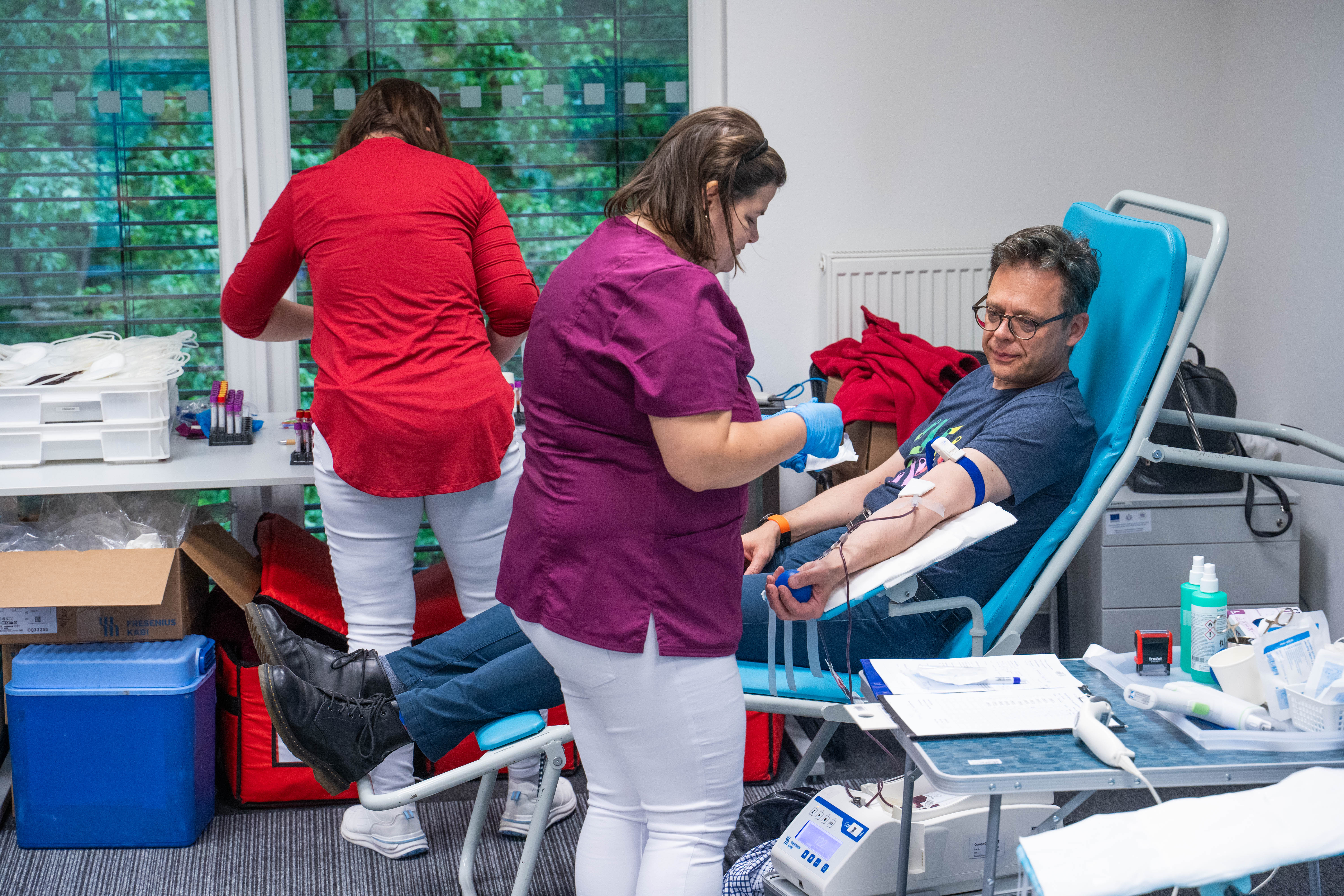 Priestory zasadačky Ústavu materiálov a mechaniky strojov SAV, v. v. i. v utorok a v stredu (16. a 17. apríla 2024) zaplnil zdravotnícky tím z Národnej transfúznej služby Bratislava - Kramáre a záujemcovia o darovanie krvi. Dobročinné podujatie doplnila svojou prednáškou aj docentka Oľga Pecháňová z Ústavu normálnej a patologickej fyziológie CEM SAV, v. v. i. Prednášku si okrem darcov krvi prišli vypočuť aj študenti a študentky Spojenej školy Svätej Rodiny v Bratislave-Petržalke.
