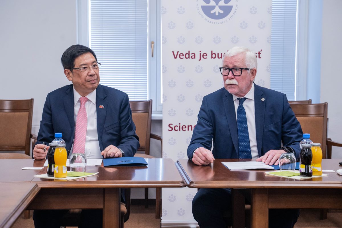 Predseda SAV Pavol Šajgalík a zástupca Taipejskej reprezentačnej kancelárie v Bratislave Nan-Yang Lee