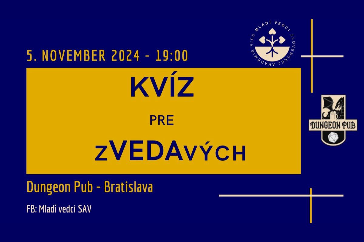 Kvíz pre zVEDAvých sa vracia po letnej prestávke medzi verejnosť. Otázky z vedeckých oblastí SAV budú premiešané so zaujímavosťami zo spoločenských hier a superhrdinov. Tešíme sa na vás v utorok 5. novembra 2024 o 19.00 hod. v Dungeon Pube na Štefánikovej ulici v Bratislave.