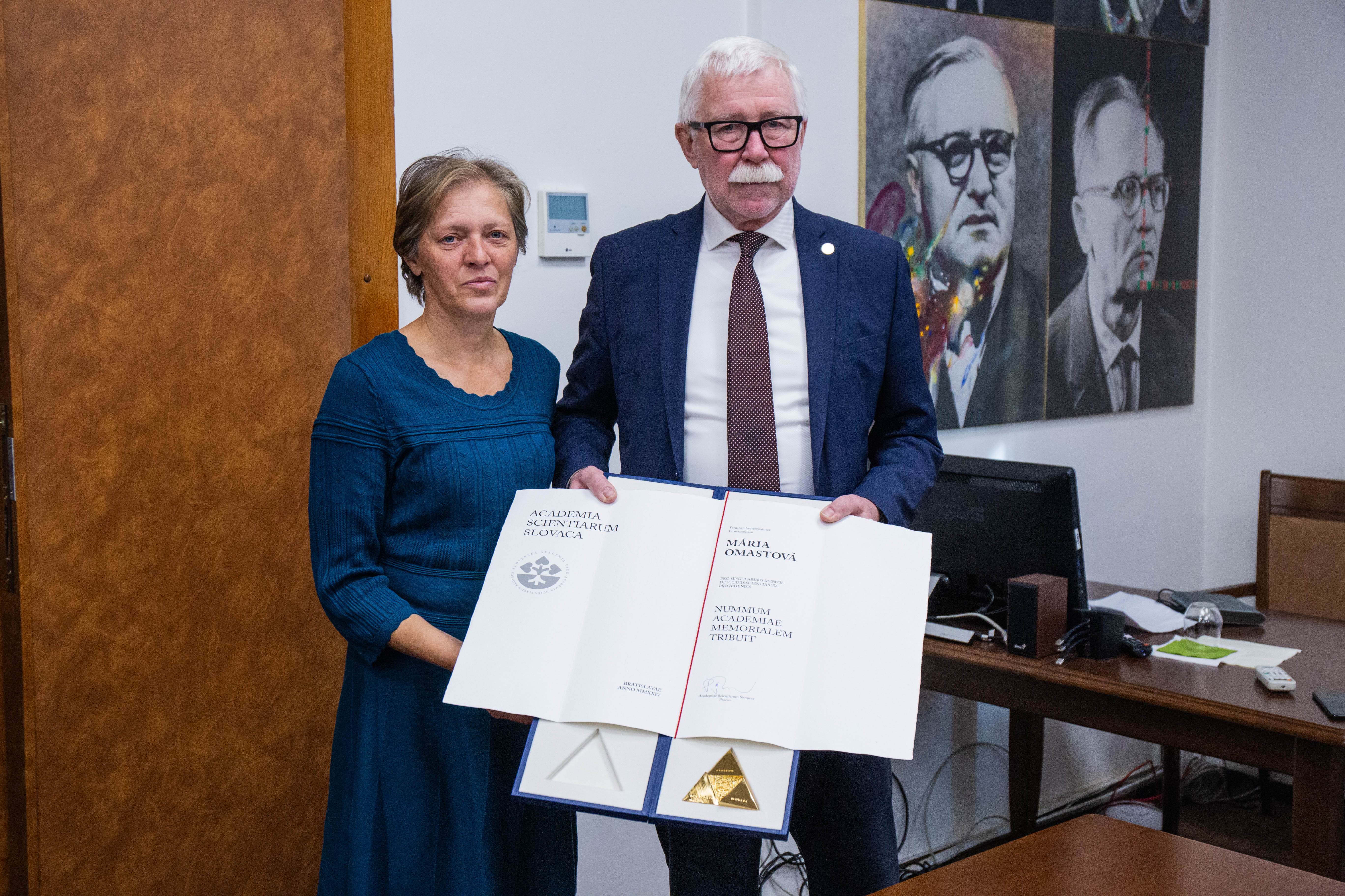 V pondelok 18. novembra 2024 sa na pôde SAV uskutočnilo odovzdávanie Zlatej medaily SAV in memoriam pre významnú vedkyňu, odborníčku v oblasti makromolekulovej chémie a niekdajšiu členku Predsedníctva SAV Máriu Omastovú. Medailu predseda SAV prof. Pavol Šajgalík odovzdal neteri a sestre M. Omastovej.