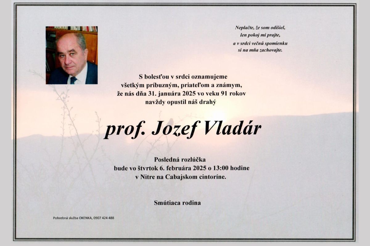 Posledná rozlúčka s profesorom Vladárom sa uskutoční vo štvrtok 6. februára 2025 o 13.00 h na Cabajskom cintoríne v Nitre.