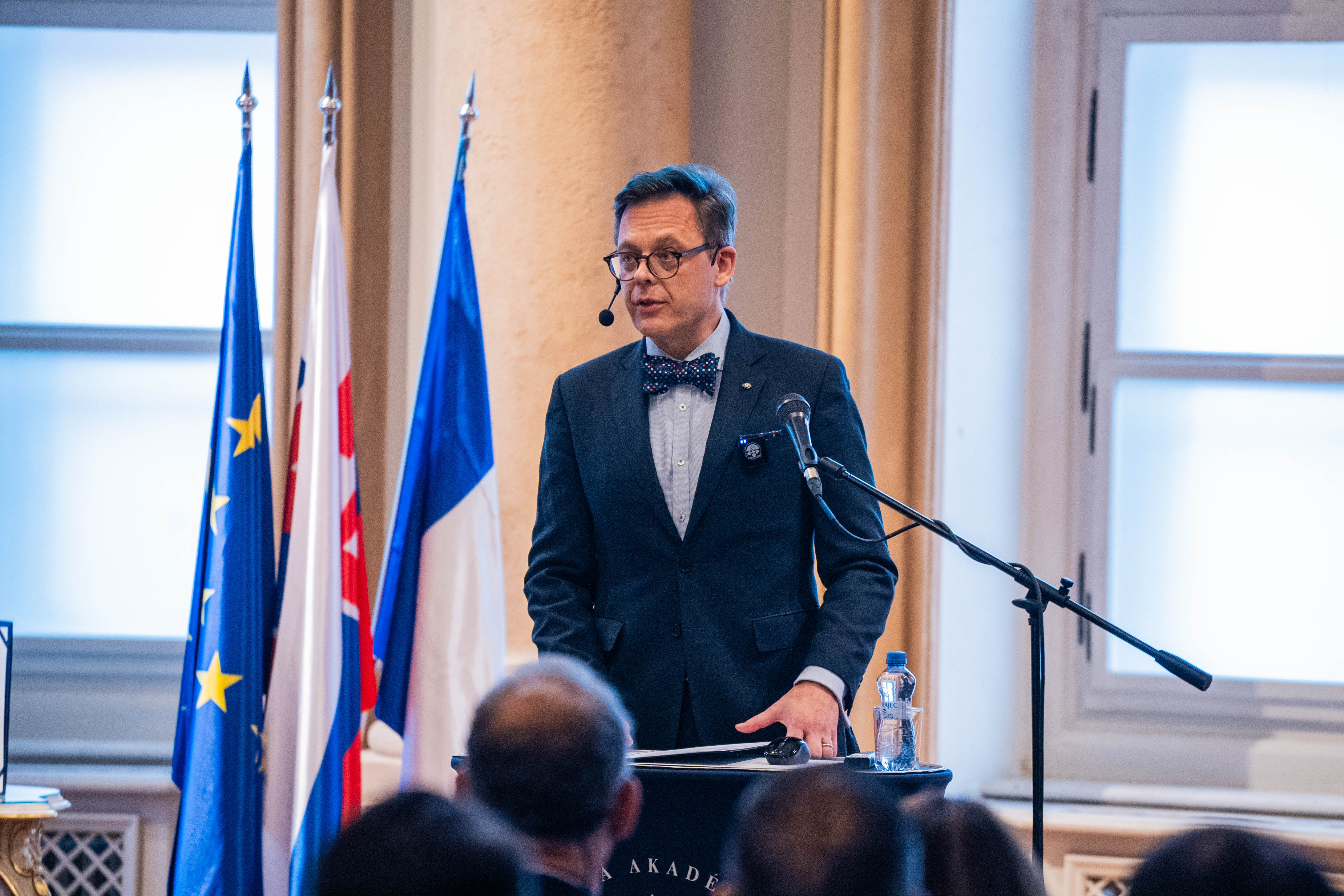 Medzinárodnú cena SAV 2025 si z rúk predsedu SAV dr. Martina Venharta prevzal dr. Christophe Marcenat