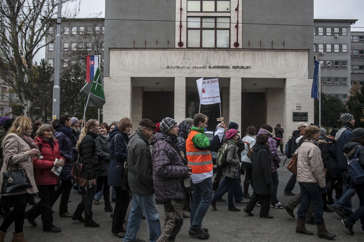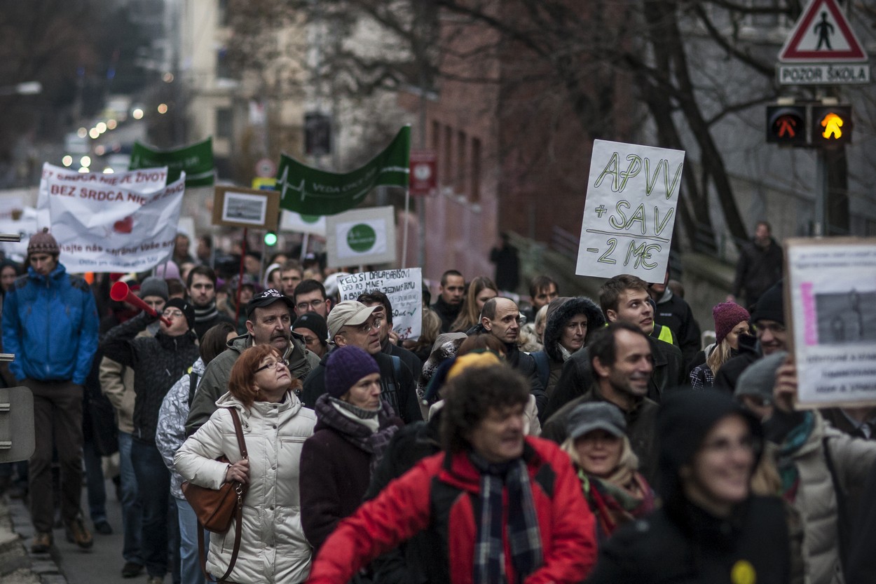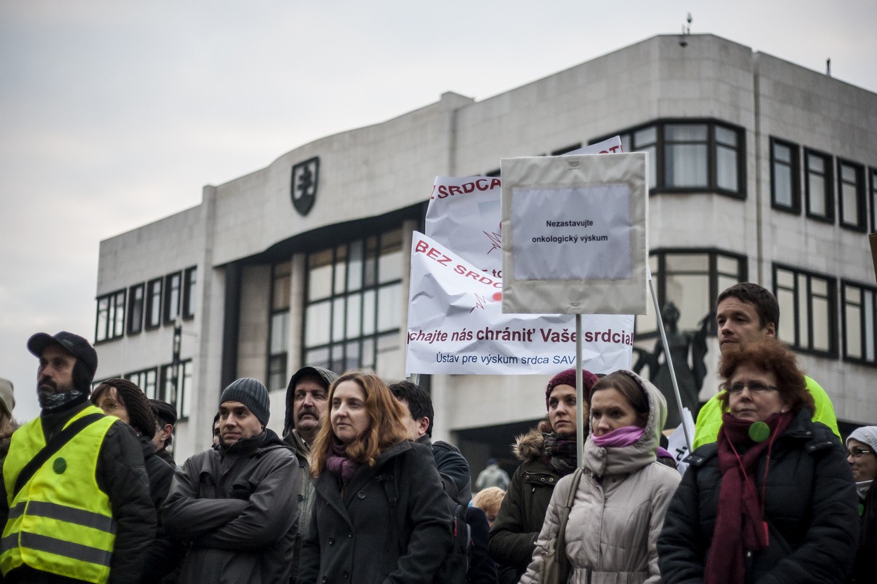 Protestný pochod proti likvidácii vedy, organizovaný iniciatívou Veda chce žiť!, sa uskutočnil dnes, 26.11.2014, za účasti zamestancov Slovenskej akadémie vied.