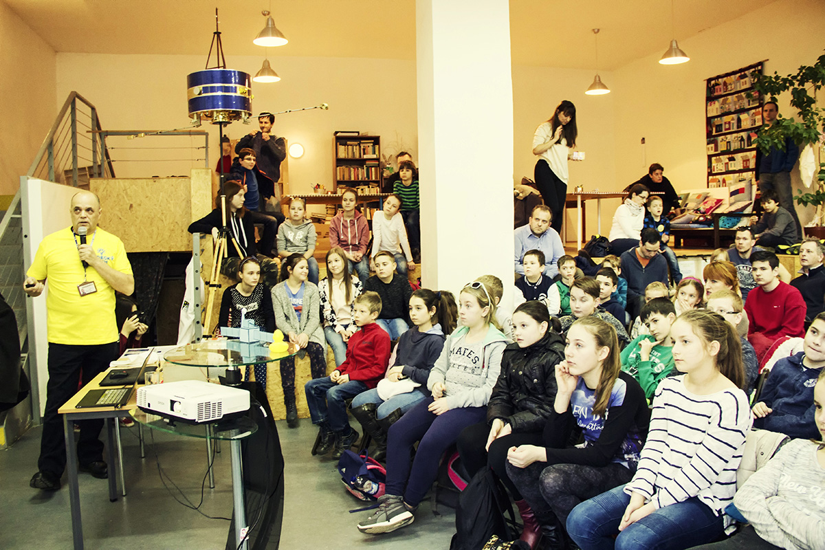 Natrieskaný výmenník na Ulici obrody v Košiciach bol v poslednú februárovú sobotu presvedčivým dôkazom, že vesmír, hviezdy, kométy a na ne letiace družice - sú spoľahlivé témy, ktoré pritiahnu malých vedátorov. O výskumoch vo vesmíre tentoraz vo vedeckom brlohu prednášal Ing. Ján Baláž, PhD. z Ústavu experimentálnej fyziky SAV.
