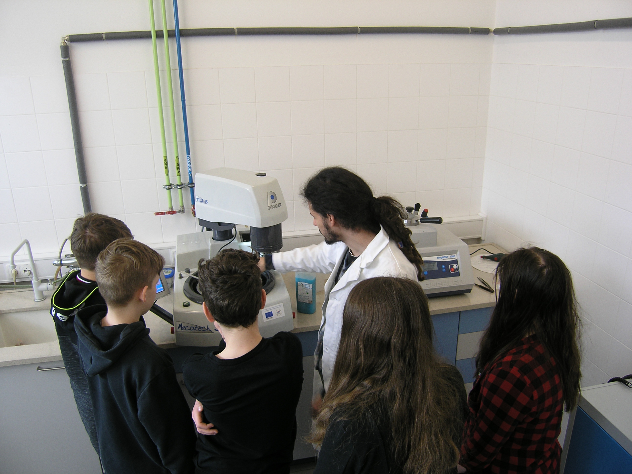 Ústav materiálov a mechaniky strojov SAV šiestakov v úvode oboznámil s teóriou evolúcie a vývoja materiálov. Nasledovali praktické ukážky výroby materiálov odlievaním, vďaka čomu školáci pochopili, ako kovové materiály získavajú svoj finálny tvar. V špičkovo vybavených laboratóriách sa napríklad zoznámili s 3-D tomografiou, kde museli prísť na princíp zobrazovania a podstatu, že materiál inej farby má inú hustotu. Šiestaci mali tiež možnosť vidieť a najmä zistiť na vlastnej koži, ako funguje mikroskop, naučili sa pripraviť vzorku pre pozorovanie a určiť chemické zloženie kovových materiálov.