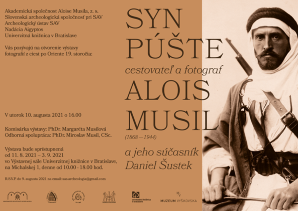 Tvorbu cestovateľa a fotografa Aloisa Musila a jeho súčasníka Daniela Šusteka zameranú na fotografie z ciest po Oriente 19. storočia približuje výstava Syn púšte, ktorej slávnostná vernisáž sa uskutoční v utorok 10. augusta o 16. h vo Výstavnej sále Univerzitnej knižnice v Bratislave na Michalskej ulici.