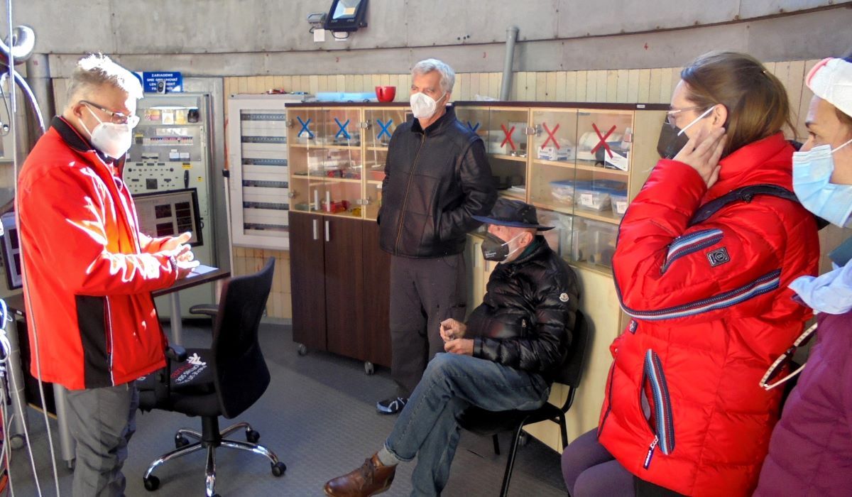 Po náročnom týždni v Bratislave hostia prišli do Vysokých Tatier a takmer hodinu venovali prehliadke pracovísk a prístrojov Ústavu experimentálnej fyziky SAV a Astronomického ústavu SAV na Observatóriu Lomnický štít.