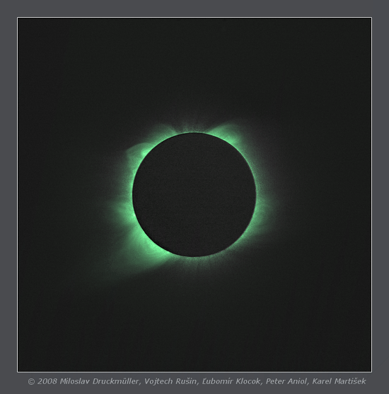 1. Štúdium emisnej zelenej koróny 530,3 nm (Fe XIV) pomocou dvoch úzkopásmových filtrov s pološírkou priepustnosti 0,15 nm pri pracovnej teplote 45 stupňov Celzia. Filtre sú napájané svetlom z dvoch teleobjektívov s ohniskou dĺžkou 50 cm. Jeden filter je nastavený na spektrálnu čiaru koróny 530,3 nm (obr.3), druhý v jej susednej blízkosti, aby sa dal odpočítať príspevok bielej koróny (spojitého pozadia). Zariadenie je vkladom Astronomického ústavu SAV.