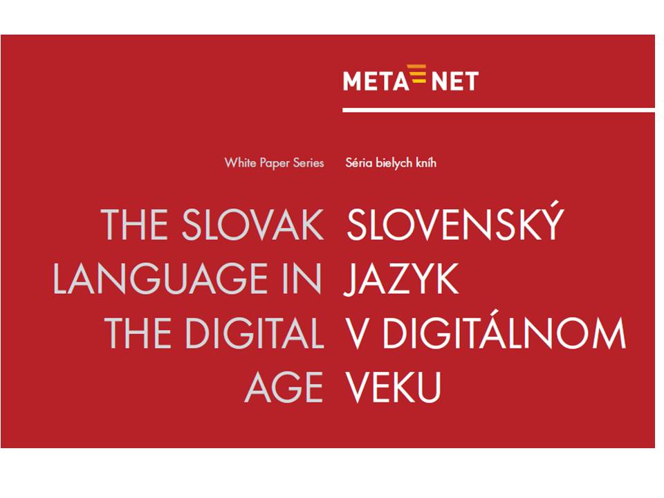 V oddelení Slovenského národného korpusu JÚĽŠ SAV, ktoré sa od roku 2002 systematicky venuje počítačovému spracovaniu slovenčiny v písanej i hovorenej podobe, sa postupne pripravilo viacero databáz a výstupov umožňujúcich zapojenie Slovenska a slovenčiny do medzinárodných projektov v oblasti tvorby jazykových technológií. Jedným z nich je sieť excelentnosti META-NET (http://www.meta-net.eu/) a projekt CESAR (http://cesar.nytud.hu/), v rámci ktorých sa podporuje rozvoj multilingválnych technológií v Európe. Riešitelia v rokoch 2011 – 2012 pripravili sériu bielych kníh o stave týchto technológií a nástrojov spracovania prirodzeného jazyka. V slovenskej bielej knihe Slovenský jazyk v digitálnom veku sa opisuje história vzniku slovenčiny a jej špecifiká oproti ostatným jazykom a osobitne v európskej informačnej spoločnosti a porovnáva sa stav podpory pre 30 skúmaných európskych jazykov.