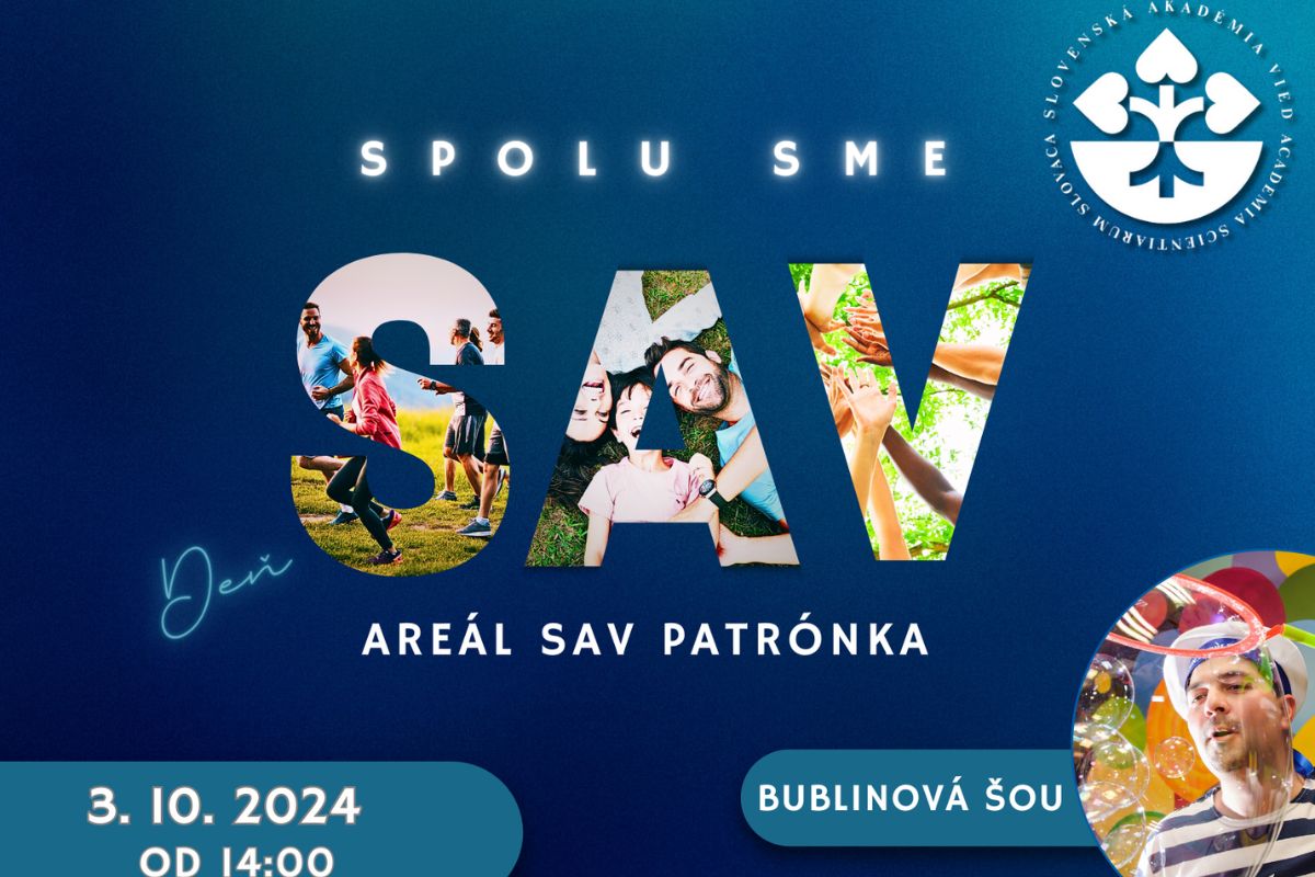 Vo štvrtok 3. októbra 2024 od 14:00 do 17:00 sa pred Aulou Slovenskej akadémie vied na Patrónke uskutoční podujatie Spolu sme SAV.