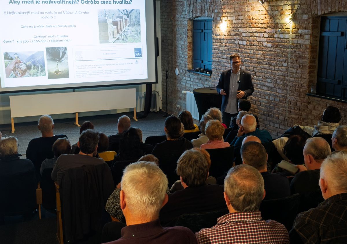 Súčasťou prednášky bol aj pohľad na cestu medu „od úľa po laboratórium“ – od podmienok jeho vzniku cez spracovanie a analýzu až po konkrétne využitie v zdravotníctve. Nechýbali praktické odporúčania, ako rozpoznať kvalitný med a na čo si dať pozor pri jeho výbere.