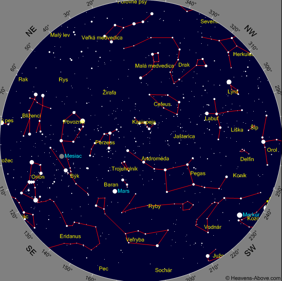 Vo výhodnej polohe na pozorovanie bude aj planéta Merkúr, ktorá je k Slnku najbližšie. Podľa astronóma SAV je táto planéta na oblohe jasnejšia ako všetky hviezdy s výnimkou Síria, no len málokto ju videl na vlastné oči.
